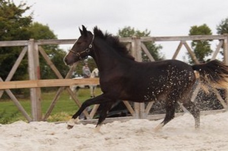 Du nouveau à l’élevage, arrivée d’une jolie pouliche noir pangaré (nouvelle appellation pour bai brun) née le 18 mai 2016. Etant obsédé par le souhait de pouvoir continuer à produire des poneys de couleur et plus particulièrement Isabelle, j’ai saisi l’opportunité de compléter ma jumenterie par Goodluck de la Sélune. Des étalons crème lui seront particulièrement destinés et, très certainement, le qualiteux Ubiwan des Collines. Souhaitons qu’elle soit une bonne reproductrice mais je n’ai aucun doute qu’elle produise aussi chic que les produits nés dans mon élevage jusqu’alors. C’est une pouliche de 18 mois avec trois belles allures et un joli modèle carré. Elle a de la branche ! Avec, dans son arbre (généalogique), à la fois, Neicop d’Argent (PFS) qui produits d’excellents poneys de sport (ainsi Ustinov Landai, étalon Pfs, champion des 3 ans mâles et champion de France CCJPS 4 ans D) et Dawn De Foxglen, poulinière issue de l’excellent Haras des Chouans (49). Julie Xardel de l’élevage d’Eros (79) me fournit ainsi l’occasion d’enrichir mon élevage de l’apport génétique prestigieux de cette future poulinière. Magnifique pouliche Poney Français de Selle. La classe, non ?