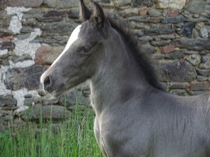 Très chic poulain avec une tête superbe, très intelligent, super caractère, se déplace très bien et avec fierté, et possède une robe plus qu’originale et recherchée, le « smoky black ».